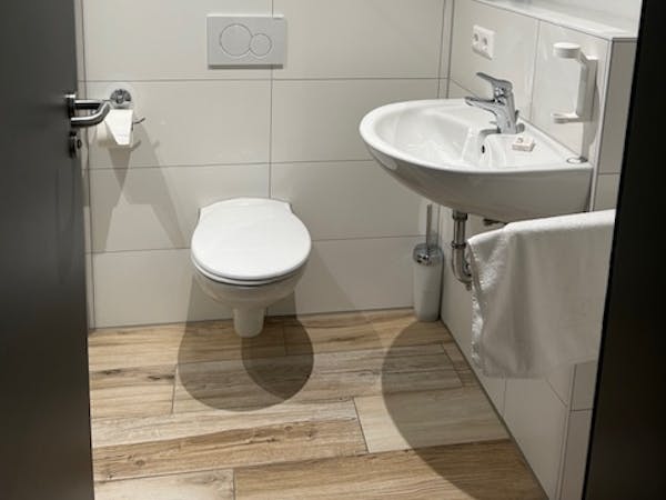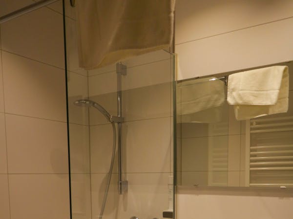 Das Doppelzimmer verfügt über ein eigenes Bad mit Dusche. Dieses Doppelzimmer verfügt über einen Balkon zur Nord-Ost Seite des Hauses, eine Tee- und Kaffeemaschine sowie einen Flachbild-TV.
