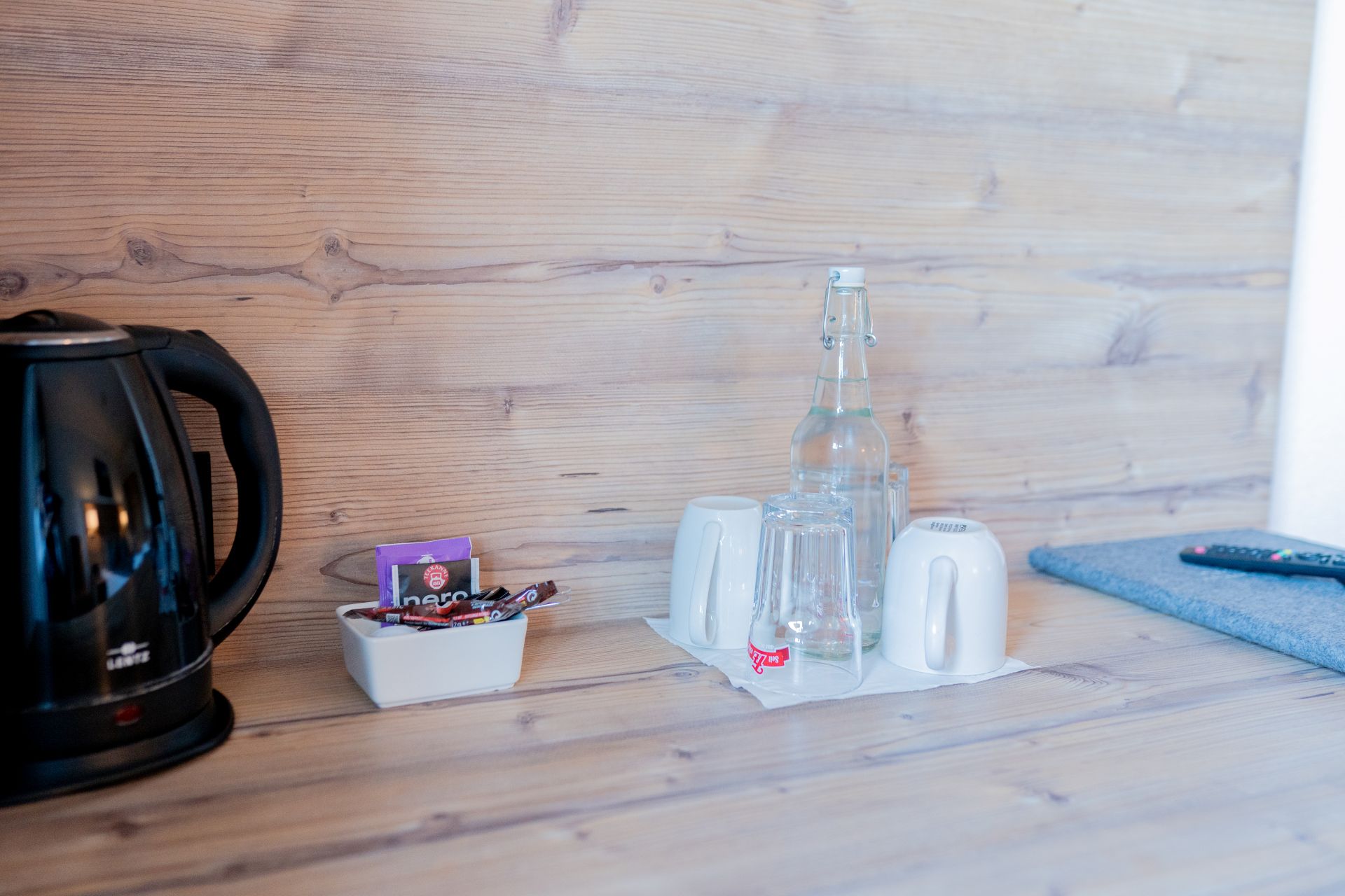 Dieses Souterrain-Doppelzimmer liegt auf der Süd-West Seite unseres Hotels, fernab der Straße und verfügt über einen Flachbild-TV sowie Tee- und Kaffeezubehör.